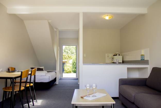 1 x 2 - Bedroom unit contains a queen bed upstairs on a mezzanine, and the option of a super king and single or 3 single beds in a bedroom downstairs